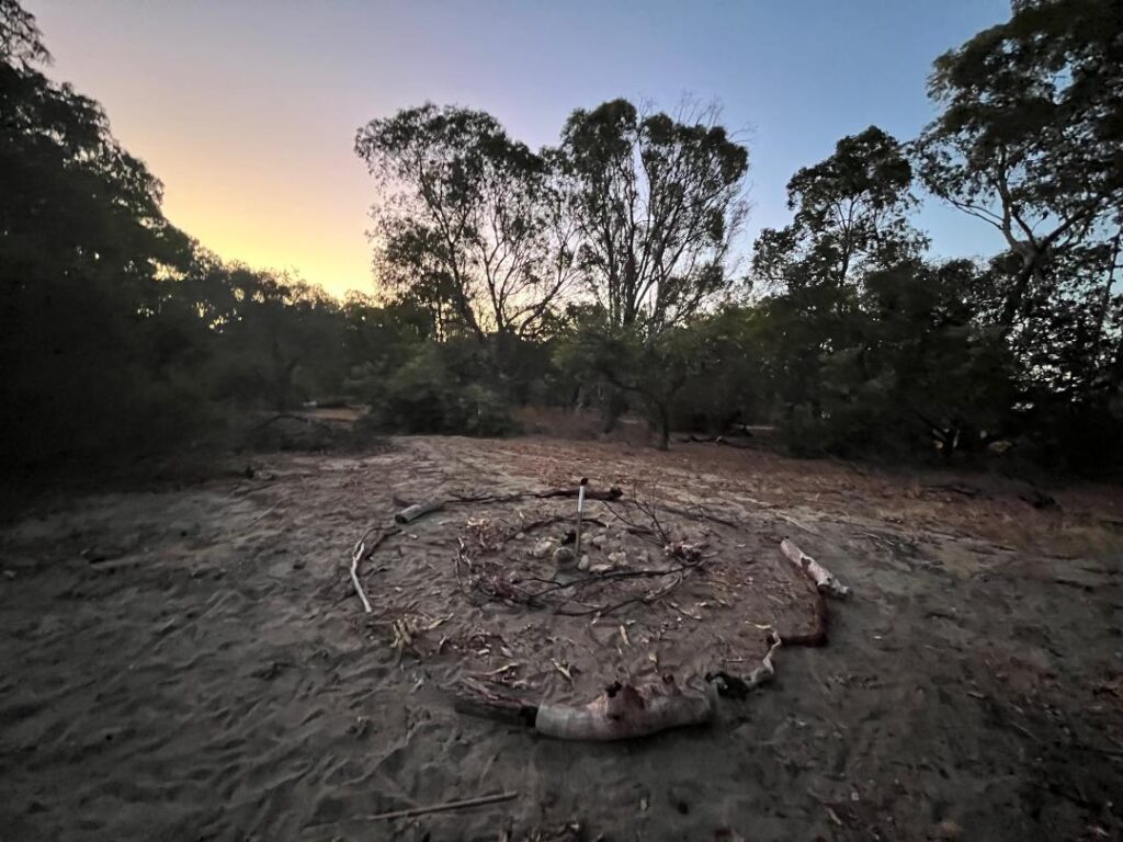 From these seeds, a large spiral form will unfurl across the ground, created collectively by the community. Participants of all ages will add to the spiral with natural materials — gathered seeds, leaves, ochres, stones, and footprints — weaving their contributions into a shared whole. From above, the spiral resembles a living galaxy. Over time, it dissolves back into the land as a collective act of return and renewal. Community workshops will combine clay gathering, seed-making, story-sharing and pit firing the clay seeds.