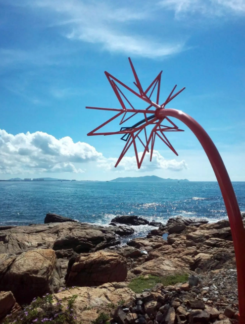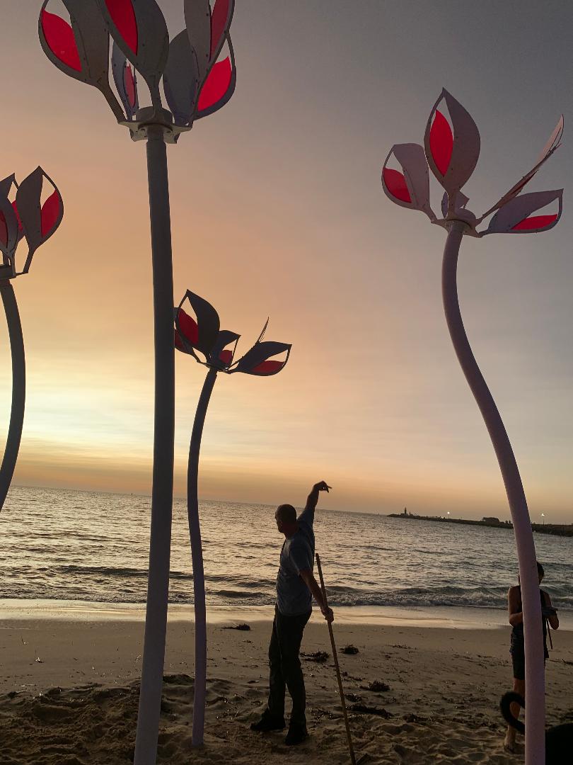 Crafted from rolled aluminium pipe and plate, each flower is mounted on a trailer axle, allowing it to spin gracefully in the wind. As they turn and shimmer, the Wind Dancers become joyful symbols of movement, energy, and enduring connection.