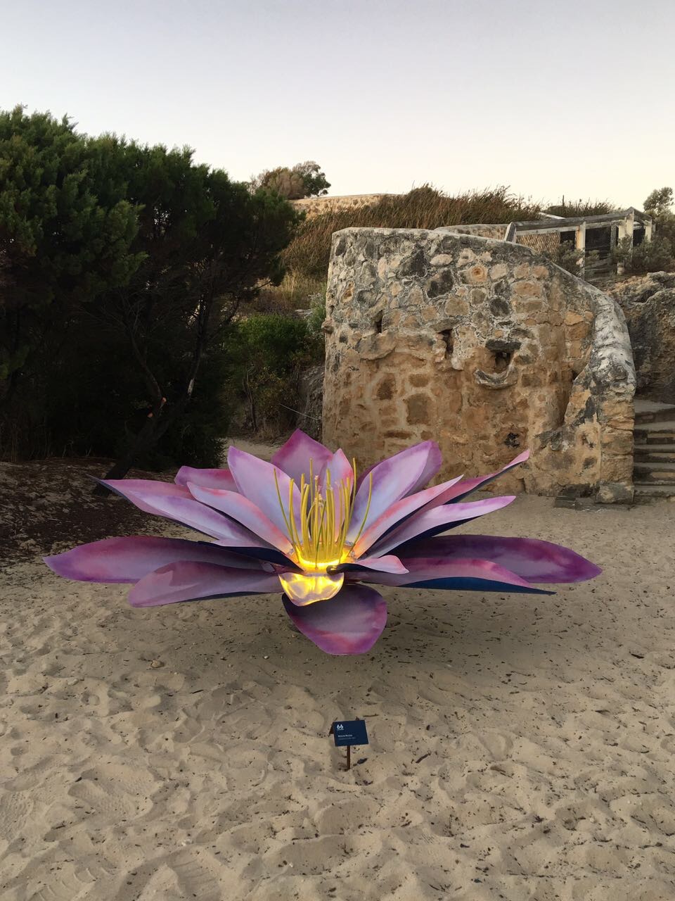 Wild Woman’s Scent is the first artwork in a series of large-scale flower sculptures. Created for the 2013 Sculpture at Bathers exhibition in Fremantle, it stands six metres tall and is fabricated from steel pipe.